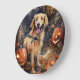 Halloween Golden Retriever mit Pumpkins Beängstige Große Wanduhr