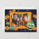 Diese Halloween-Grußkarte verfügt über einen zentralen Foto-Bereich, der von einem spielerischen und leichtem Halloween-Thema umgeben ist. Die Grenze um das Foto ist voll von Kürbissen im Cartoon und verschiedenen witzigen Monstern, die jeweils ihre eigene Persönlichkeit haben. Die Kürbisse haben breite, goofy grins, und die Monster reichen von albernen Geistern mit freundlichen Ausdrücken bis hin zu niedlichen, bunten Kreaturen mit übertriebenen Merkmalen. Lila Fledermäuse flattern um die Ränder, was die skurrile Atmosphäre verstärkt. Der Hintergrund der Karte ist ein tiefes lila, das sich gut in den hellen, fröhlichen Farben der Kürbis, der Monster und der Fledermäuse widerspiegelt. Das Design schafft ein Gleichgewicht zwischen Lustigkeit und Spaß, was es perfekt macht für einen leichten Halloween-Gruß. Die "Happy Halloween"-Caption kann in einem spielerischen, kühnen Schriftart ganz oben auf der Karte platziert werden. Am unteren Ende der Karte gibt es Platz für personalisierten Text, z. B. eine Grußmeldung oder eine "Von [Ihrem Namen]"-Nachricht, die es dem Absender ermöglicht, seine eigene Touch hinzuzufügen. Auf der Rückseite der Karte befindet sich ein solider orangefarbener Hintergrund, der eine leere Leinwand für jeden zusätzlichen Text oder eine längere persönliche Nachricht bietet. Der minimalistische Rücken sorgt dafür, dass das lebhafte und lebendige Design an der Vorderseite sich von selbst überragt.
