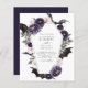 Halloween 31. Oktober Herbst Herbst Dunkle Wasserfarbe Lila und Grüne Hochzeitseinladungen auf schwarzem Hintergrund - beinhaltet eine beängstigende und elegante Schriftzeichen-Typografie mit modernen Blume und Bat Wings für die besondere Creepy Wedding Day Feier.
