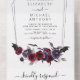 Halloween 31. Oktober Herbst Herbst Dunkle Wasserfarbe Burgund und Schwarze Hochzeit Einladungen mit geometrischem Rahmen - beinhaltet eine beängstigende und elegante Schrift Typografie mit modernen Blume und Fledermäusen für die besondere Creepy Wedding Day Feier.