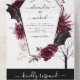 Halloween 31. Oktober Herbst Herbst Dunkle Wasserfarbe Burgund und Schwarze Hochzeitseinladungen - beinhaltet eine beängstigende, elegante Schriftzeichen-Typografie mit modernen Blume, Spiders, Koblis und Bat Wings für die besondere Creepy Wedding Day Feier.