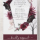 Halloween 31. Oktober Herbst Herbst Dunkle Wasserfarbe Burgund und Schwarze Hochzeitseinladungen - beinhaltet eine beängstigende, elegante Schriftzeichen-Typografie mit modernen Blume, Spiders, Koblis und Bat Wings für die besondere Creepy Wedding Day Feier.