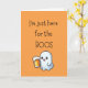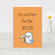 Feiern Sie einen Halloween-Geburtstag mit dieser köstlichen Grußkarte, die ein anmutiges Design aufweist, das spielerisch "Hier für die Boos" sagt.