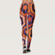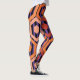 Diese Leggings haben ein geometrisches Design von Sechsecken in vier Orangetönen auf einem Feld von schwarzen und lila Streifen.