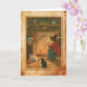 Charmantes Vintage-Bild der Hexe selbst am Kamin. Design präsentiert sich auf bedrücktem Hintergrund und Rahmen mit zusätzlicher Textur des Bildes.