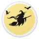 Themenorientierter Entwurf Halloweens mit Hexefliegenreiten auf einem Besen zusammen mit Schlägern. Der Vollmond ist auf dem Hintergrund sichtbar. Sie können die Farbe dieses Türknaufes unter Verwendung leicht ändern "besonders anfertigen es" Knopf. Es ist ein perfekter Entwurf für Halloween-Geschenke.
