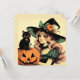 Halloween Hexe mit Schwarzer Katze und Jack-o-Late Karte