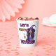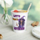 Witzige Hexe mit lila Kleid und Text "Lass's Party Hexen"