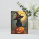 Halloween Hexenkatze auf einem Kürbis Feiertagspostkarte