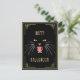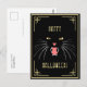 Halloween Hissing Cat Black Elegant Postcard. Schwarz und Gold (Gold ist kein echtes Gold, sondern Farbe). Hissende Katze mit goldenen Augen, weißen Zähnen und rosa Zunge und Nase. Schwarzer Hintergrund, goldene Deko-Stilgrenze. Goldener Text. Elegant, modern und lustig.