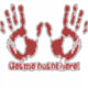 Ein lustiger Halloween-Horror-Aufkleber mit zwei roten, blutigen Handdrucken und dem Zitat "Hol mich hier raus!" Sie können den Text ändern, wenn Sie es vorziehen
