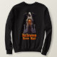 Mit diesem faszinierenden Halloween-Design verschmelzen Sie den kühlen Reiz der Nacht. Eine Weibliche steht vor einem Grabstein in einem Friedhof, bereit, Angst über die Welt zu entfesseln.