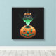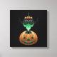Halloween Horror Punk Pop Kultur Fantasy Kunst grünes Zombie-Monster mit Kürbislaternen, Kürbis und schwarze Katze mit einer Schädelmaske tragen.