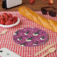 Halloween Horror Spooky Eyeball Hexenhutte Web Bone Lila Muster.