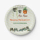 Ein lustiges Halloween-Party personalisiert Teller für ein Halloween-Party. Es zeigt Aquarellbilder von hängenden Pflanze (darunter ein Jack o'lantern) und eine Reihe von Grauschuhen. Matching-Elemente verfügbar.