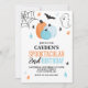 Halloween Geburtstagsfeier Einladung. Ein herrlicher Geburtstagsbash lädt mit türkisfarbenen Kürbissen und Sternen und Spinnen ein.