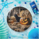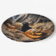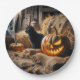 Halloween Jack-o-Lantern und Katze im Stall Pappteller