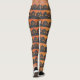 Schwarze und orangefarbene Leggings haben Reihen von schwarzen Jack o'lanterns, die auf schwarzen Hügeln mit orangefarbenem Himmel aufgereiht sind. Spaß, farbenfroh und perfekt für die Halloween-Saison!