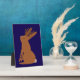 Diese phantastische Plakette zeigt ein digitales Kunstbild eines Jackalope, einer mythischen Kreatur, die auch als Kryptid bekannt ist und im Wald leben soll. Das Tier ist eine Mischung aus einem Jackkaninchen und einem Hirsch, das das offizielle mythische Wesen des Staat von Wyoming ist. Mein Design hat das braune Tier aufrecht stehend mit den Ohren oben, wenn es nach oben blickt. Es hat dunkelbraune Geweihe auf dem Kopf. Die freche Jackalope hat einen Ruf als Trickster, sie ist das perfekte Tier für Halloween-Trick oder Leckereien.