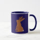Diese phantastische Tasse zeigt ein digitales Kunstbild eines Jackalope, einer mythischen Kreatur, auch bekannt als Kryptid, die angeblich im Wald leben soll. Das Tier ist eine Mischung aus einem Jackkaninchen und einem Hirsch, das das offizielle mythische Wesen des Staat von Wyoming ist. Mein Design hat das braune Tier aufrecht stehend mit den Ohren oben, wenn es nach oben blickt. Es hat dunkelbraune Geweihe auf dem Kopf. Die freche Jackalope hat einen Ruf als Trickster, sie ist das perfekte Tier für Halloween-Trick oder Leckereien.