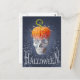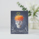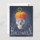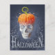 Halloween Card von Alfoart mit dem Schädel, Kürbis, dunklem Hintergrund.