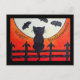 Halloween-Katze auf einem Zaun auf der Mondpostkar Postkarte
