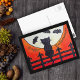 Bild ist mein Originalbild. Diese schwarze Katze sitzt auf einem schwarzen Spitzenzaun und sieht zu, wie Fledermäuse von einem großen Mond überfliegen. Der Hintergrund ist orange mit einem schwarzen Rand und der Text liest Happy Halloween. Sehen Sie in meinem Shop Art by MAR nach, um Produkte mit diesem Design zu kombinieren.