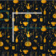 Ein Hexenthema Cauldron und Tränke gemusterte Stoff. Das Design umfasst Tränke und Kessel in Orange auf schwarzem Hintergrund. Ein lustiges Design für Halloween-Wohngestaltung, Kreieren, Nähen oder Quilting-Projekte.