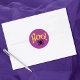 Boo! Es ist Halloween. Ein fröhlicher Aufkleber für all Ihre Halloween-Grüße. Das Wort Boo! ist in einer gewölbten, gruseligen Schrift namens Goghonri. Eine schwarze Spinne mit spitzen Beinen hängt zentriert unter dem Wort. Die Farbtöne sind lila Konfitüre, Bananengelb und Nachtschwarz. Aufkleber sind die perfekte Touch für Karten, Verpackungen, Briefe und Trick-oder-Leckerei.