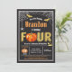 Halloween Kinder 4. Geburtstagseinladung. Schwarze Einladung