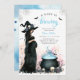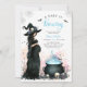 Set die Szene für eine zauberhafte Feier mit diesem Halloween Baby Shower Witch Einladung, perfekt für einen kleinen Jungen in diesem Oktober! Mit einer atemberaubenden Aquarellillustrierung einer gotischen Hexe, einem leuchtenden blauen Kessel, schwimmenden Fledermäusen, Spinnennetzen und Schädelakzenten verbindet dieses Design unheimliche Eleganz mit Halloween-Charme. Mit sanften Touchs von blauem Nebel ist es ideal für ein Duschthema "A Baby is Brewing" mit einer magischen Drehung. Voll anpassbar und perfekt für eine verzauberte, spuke und stilvolle Babydusche!