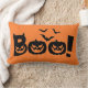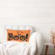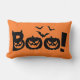 Dieses Akzent Kissen wird mit einem beängstigenden schwarzen Boo gezeigt! Halloween-Druck. Farbe Schwarz-Orange Passen Sie dieses Objekt an oder kaufen Sie, wie es ist.