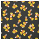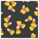 Halloween-Stoffgewebe zeigt zufällig gestreute Stücke von Süßmais in einem sich wiederholenden Muster auf einem anpassbaren schwarzen Hintergrund - von katz_d_zynes