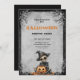Planen Sie ein Halloween-Kostüm-Party mit dieser unheimlichen thematischen Party Einladung. Beängstigendes Skelett und Pumpkin.Vintage Schriftpaarung verleiht dem Vintagen Design ein authentisches Design