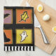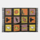 Vergnügliche Halloween-Kochdekoration mit süßer Fledermaus, Kürbis, Mond, Geist, Herbstblättern und süßer Spinne.