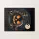 Ein schändliches Schloss vor dem Hintergrund von Echos und der Nachthimmel mit Fledermäusen. Halloween schwarzer Kürbis betont das Thema des Urlaubs.