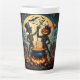 Genießen Sie eine Touch Vintagen Glamours mit dieser atemberaubenden Art Deco Jack-o'lantern Hexenkelett Latte Tasse. Seine schlanken Linien und seine komplexen Details schaffen ein faszinierendes Stück, das sowohl ungewöhnlich als auch raffiniert ist. Ideal, um Ihr Lieblingsgetränk zu trinken, während man sich der Magie von Halloween verschrieben hat.