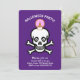 Halloween spurigen Skullen auf königlicher lila Party Einladung. Alle Texte und Zahlen sind personalisiert.