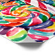 Eine Explosion Halloween-Spaß! Lollipops, Süßmais, Karamelläpfel und Pralinen füllen diese fette Collage, die in einem spielerischen Doodle-Stil geschaffen wurde. Ein hübsches und farbenfrohes Design für festliche Wandkunst.