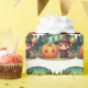 niedliche kleine Halloween-Hexe mit Kürbis, Besen und Flechtgeschenk