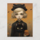 Halloween-Mädchen mit Katze Postkarte
