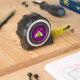 Dieses phantastische Tape-Maß enthält einen niedlichen kleinen, gelben Bienenassistenten mit schwarzen Streifen. Die Biene hat große schwarze Augen und niedliche schwarze Antennen. Die Flügel der Biene werden wieder gefaltet, um wie ein Kap auszusehen. Die Biene trägt einen hohen schwarzen Hut mit orangen und lila Sternen. Es hat auch einen Zauberstab, der sternförmig und Glitzern mit vielen verschiedenen Farben ist. Der Hintergrund ist ein Muster aus lila und schwarzen Streifen.
