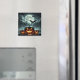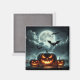 Magnet wird mit einem unheimlichen Halloween Kürbis und Fledermäusenprint gezeigt. Passen Sie dieses Objekt an oder kaufen Sie, wie es ist. Lizenziertes Bild