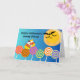 Ein Kerzenpaar sitzt auf wirbelnden Lollipops und starrt auf dem Herbstmond mit Fledermäusen. Halloween-Karte für Neuvermählte. Innen Nachricht: Candy Mais küsst und Halloween Wünsche für die Neuvermählten. Art, Bild und Vers Copyright © Shoaff Ballanger Studios, 2024.