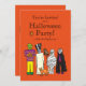 Handgezeichnete Monster und Freunde kommen für ein lustiges Halloween-Party raus! Diese doppelseitige Einladung hat anpassbare Text- und Hintergrundfarben. Monster tragen farbenfrohe Kleidung und bringen ihre Haustiere mit, um dem Party mehr Spaß zu machen.