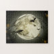 Beängstigender Halloween-Nachtmond mit Krähe und Fledermäusen.