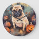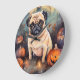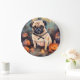 Halloween-Mops mit Pumpkins Beängstigend Große Wanduhr