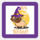 Auf diesem Halloween-Aufkleber ist ein niedliches Bild eines Mops mit Hexenhut zu sehen. Mit der Nachricht "Happy Halloween", diese Aufkleber sind ideal für dieses spezielle Mailing, Scrapbooking, Dekoration und mehr!