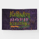 Halloween Filmschauen in grün und orange mit lila Briefmarkenleuchten auf grunge lila Typografie mit orangefarbenem Hintergrund