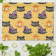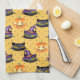 Aquarellmuster mit schwarzen Katzen und Kürbislaterne